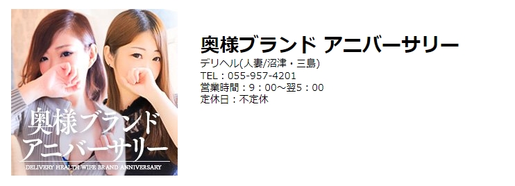 富士市でおすすめのデリヘル③:奥様ブランド アニバーサリー