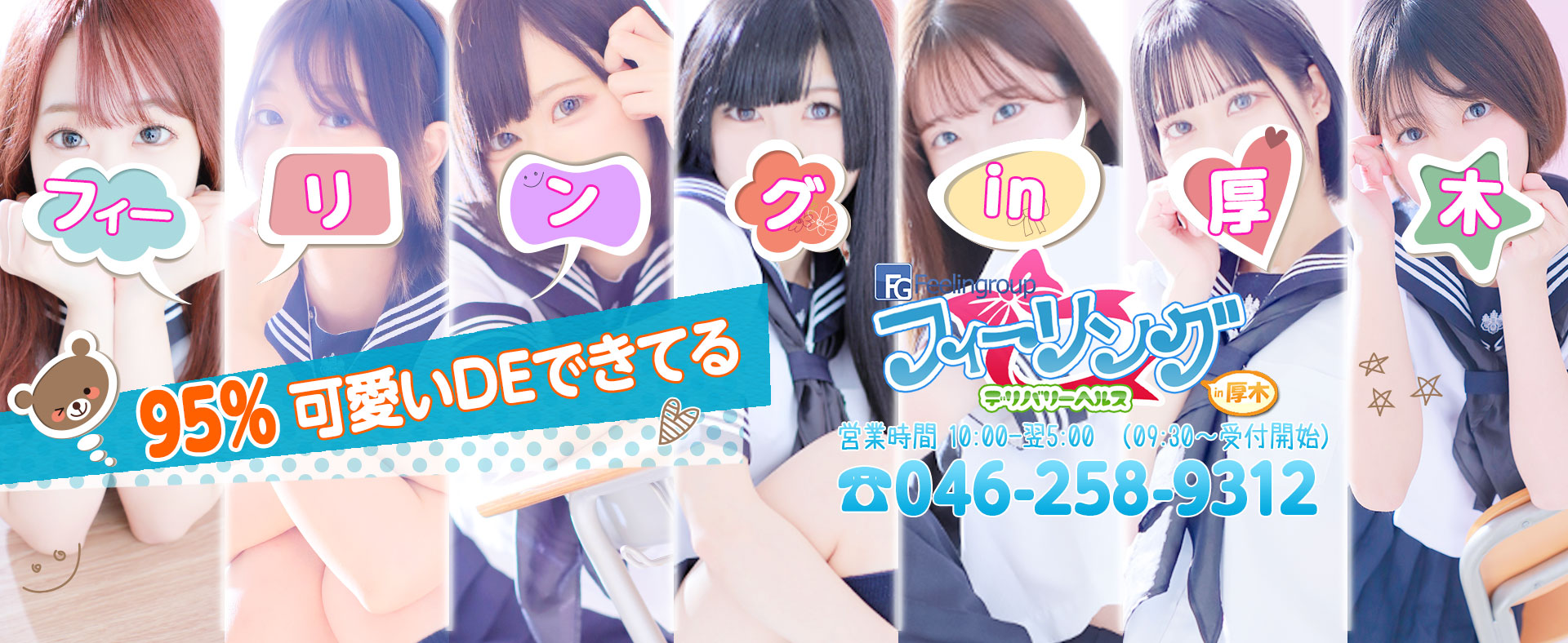 フィーリングin厚木(デリヘル) | オープンから20時まで45分:12000円~ 20時以降45分:14000円~ | 全国で風俗店を数多く展開するフィーリンググループの系列店。厚木店は制服・学園系デリヘルの人気店。 |
