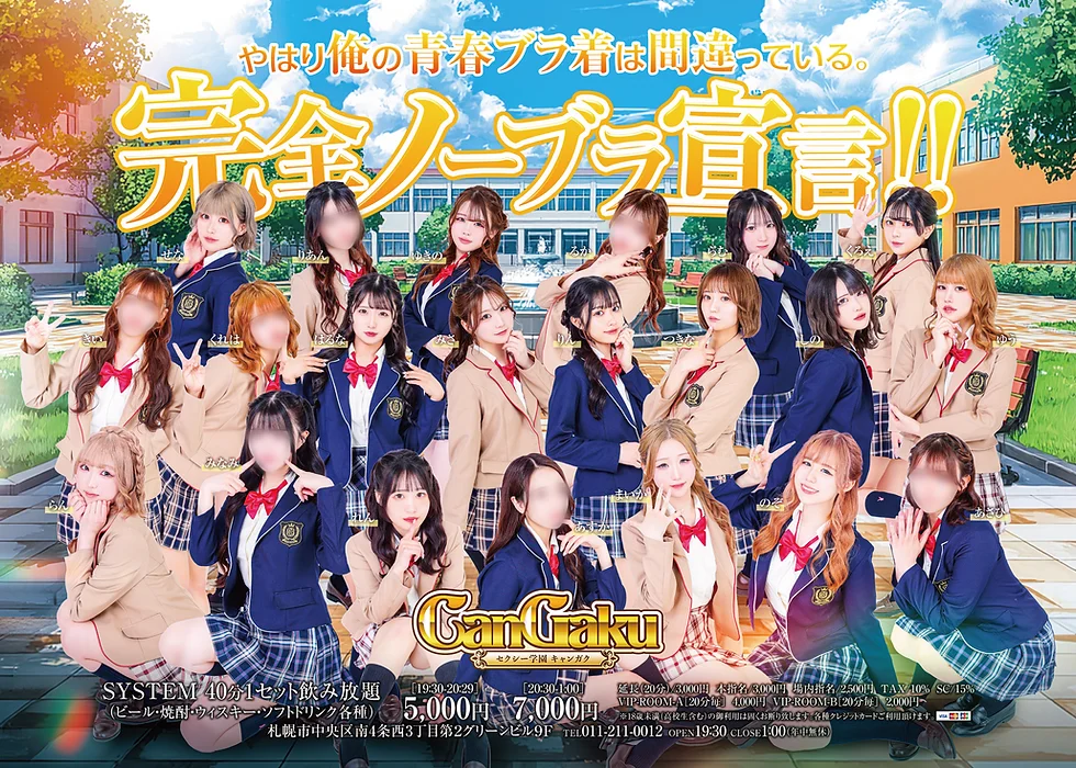 | CanGaku | 40分:4,800円〜 | ブラジャー非着用が校則。学園系セクキャバ |